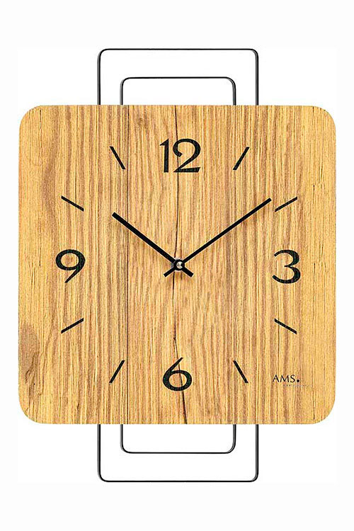 AMS W9700 – это воплощение скандинавского стиля и функциональности. Квадратный корпус с закругленными углами выполнен из дерева с текстурой светлого дуба. Четыре четко различимые арабские цифры (3, 6, 9, 12) и восемь минималистичных часовых меток обеспечивают отличную читаемость времени. Тонкий черный металлический каркас и стрелки контрастируют с теплым оттенком дерева, создавая стильный и современный образ. Бесшумный кварцевый механизм гарантирует тихую и точную работу. Модель W9700 идеально подойдет для гостиной, спальни или кухни, оформленных в светлых тонах, с акцентом на натуральные материалы и простые формы.