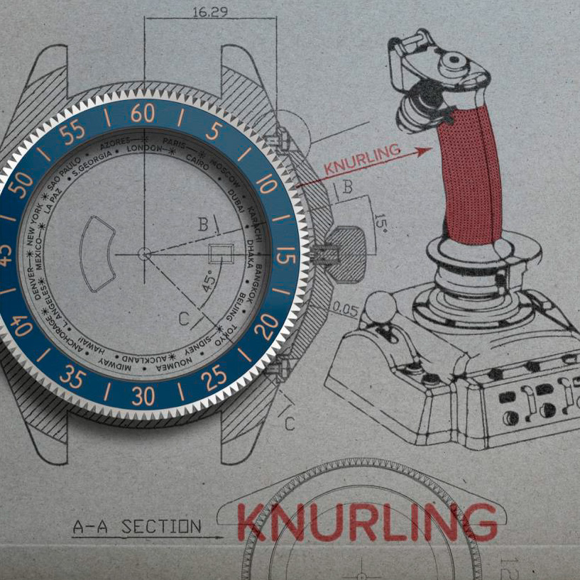 Безель, изготовленный с высокой точностью и сложной накаткой позаимствован с приборов контроля из кабины истребителя. Дизайн безеля не только усиливает техно стиль этих часов, но и позволяет вращать его без особых усилий.