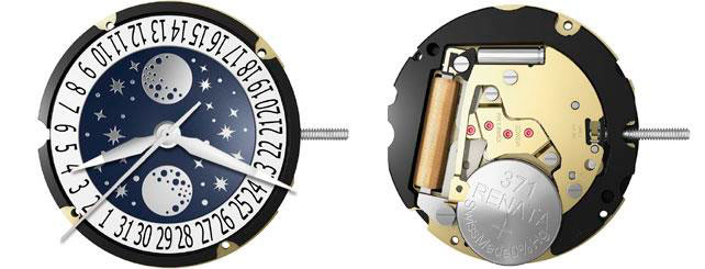 В основе этих часов лежит надежный кварцевый механизм швейцарского производства с обширным запасом хода до 60 месяцев. Он имеет усложнение фазы Луны, которое акцентировано металлизацией и полировкой. С абсолютной точностью день за днем это усложнение позволяет точно синхронизироваться со многими фазами Луны в течение месяца.