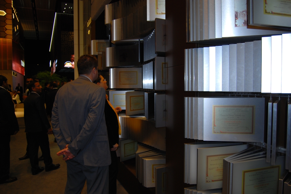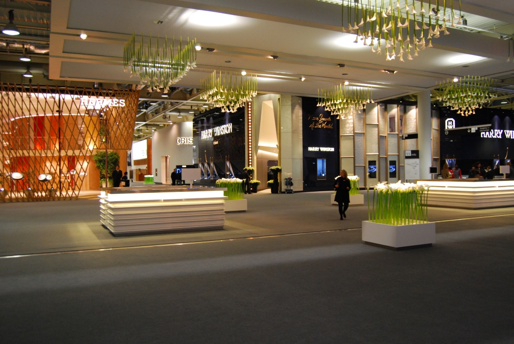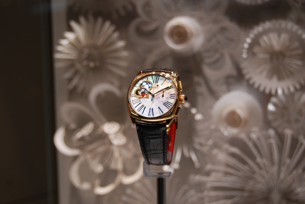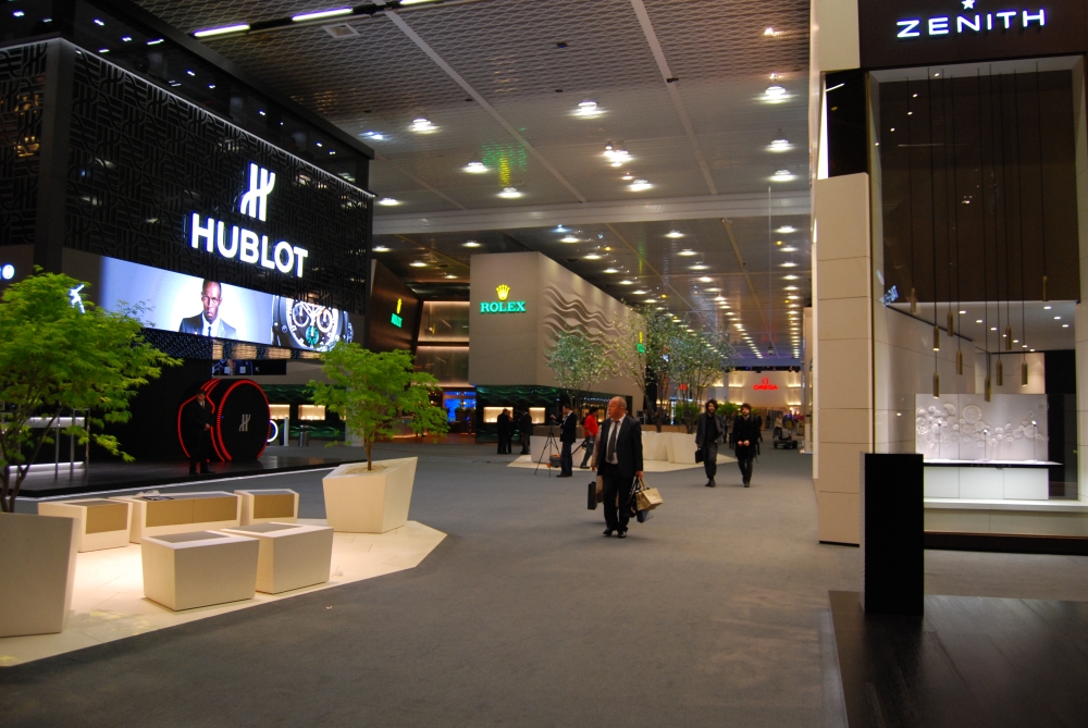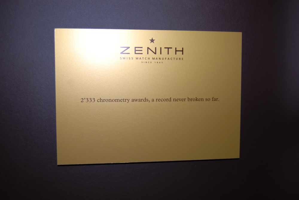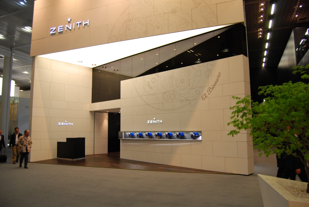 Часовые бренды LMVH — Bvlgari, Hublot, Zenith и TAG Heuer,— теперь собрались в одном месте: каждая марка получила свой собственный стенд, оформленный так, чтобы лучше подчеркнуть ее историю. Например, у TAG Heuer запомнились высокие этажи.  Стенд Zenith был затянут в благородные серые цвета – все спокойно, светло и достойно, словно в готовом музее. Впрочем, от музея здесь было не только цветовое решение – одна стена была превращена в «летопись достижений» бренда.  На ней разместились всевозможные сертификаты, патенты и изобретения Zenith за всю историю. Всего 2 333 награды в хронометрии. Это очень уместно в свете концепции развития марки: Zenith в настоящий момент увлечен выпуском различных пилотских часов, созданных в соответствии с дизайном пятидесятилетней давности.