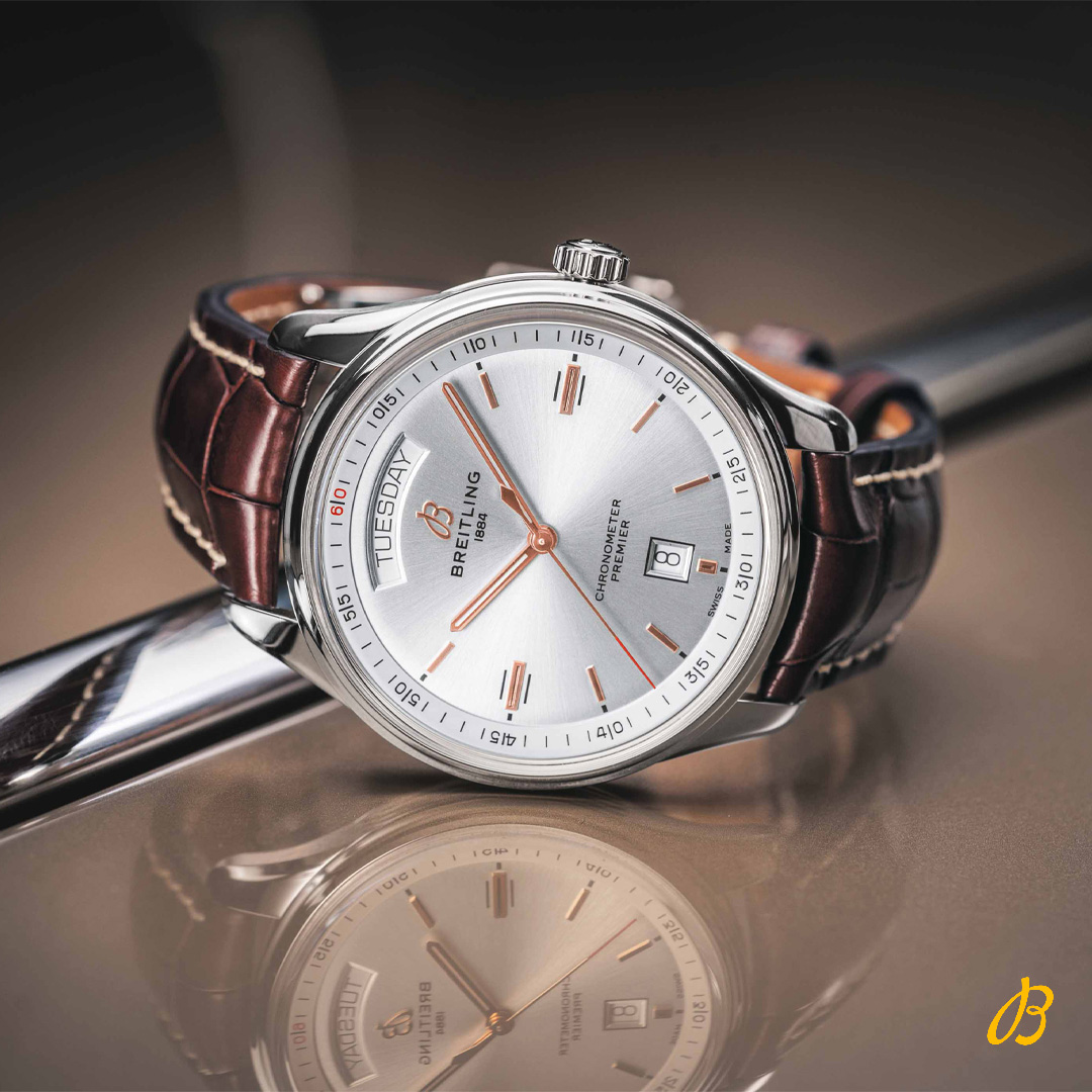 Оригинальные часы коллекции Premier, обладая диаметром корпуса от 36 до 38 мм, были меньше, чем знакомые приборные часы Breitling и часто изготавливались из золота и снабжались кожаными ремешками. Их отличительной особенностью также были механизмы хронографа, принесшие славу компании Breitling, и они также изготавливались с высочайшим качеством и обладали техническими характеристиками. Как однажды сказал Вилли Брайтлинг: «Когда человек надевает часы, они безошибочно свидетельствуют о безупречном стиле». Ему было бы приятно узнать, что его часы Premier эпохи 40-х годов послужили основой для одноименной коллекции, выпущенной спустя более, чем три четверти столетия.