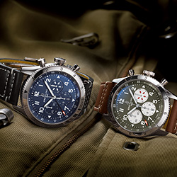 В новую серию входят пять моделей часов, посвященных четырем знаменитым военным самолетам. Их изящные силуэты украшают заднюю крышку каждого хронографа, выполненную из сапфирового стекла.