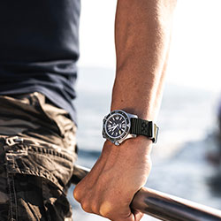 Главной особенностью Superocean Outerknown является уникальный ремешок цвета хаки. Он изготовлен из инновационного материала ECONYL®, который производят из переработанных нейлоновых отходов, в том числе остатков использованных рыболовных сетей, найденных в морях и океанах.