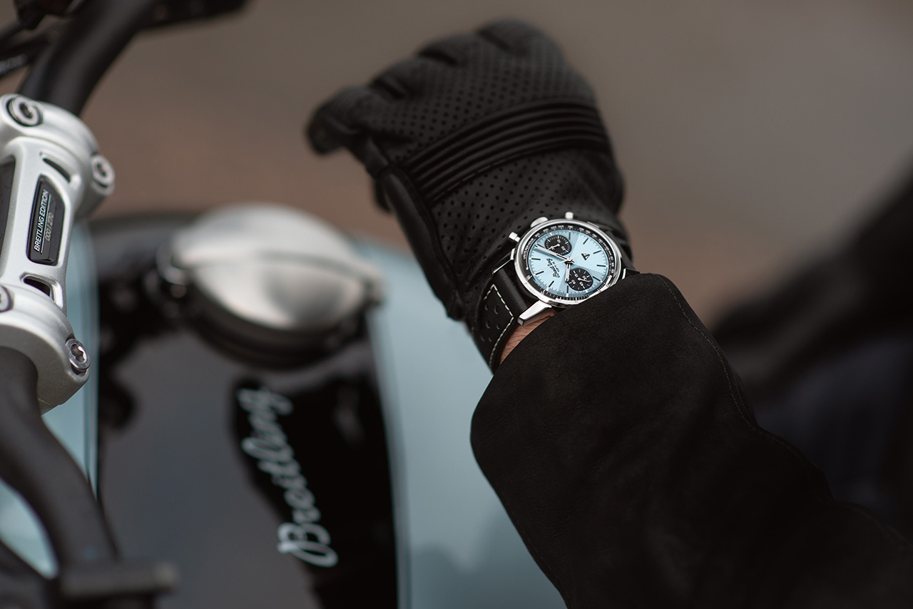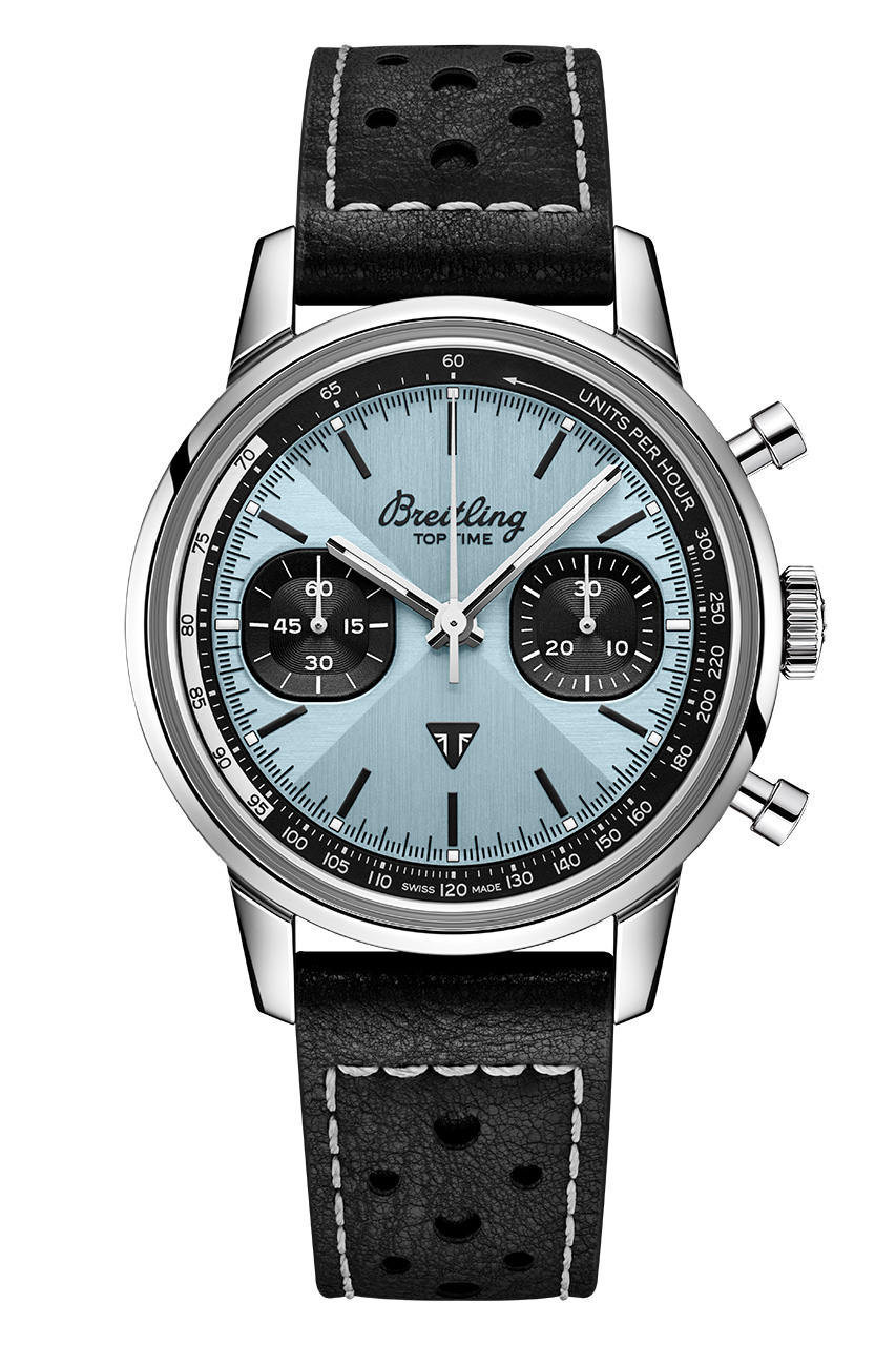 Обе версии часов отличаются светло-голубым цветом циферблата. Этот уникальный оттенок имеет два основных архивных образца: синий Triumph Thunderbird 6T 1951 года и редкий светло-голубой цвет часов Breitling Top Time Ref. 815, выпущенных в 70-е годы.
