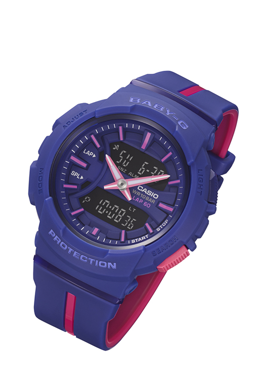 В новых спортивных моделях BGA-240L от Casio предусмотрена полезная функция секундомера. Функция времени круга измеряет время прохождения каждого сегмента маршрута – например, каждые один или пять км. А функция промежуточного времени измеряет общую продолжительность – от начала пробежки до любого выбранного момента в процессе бега. В памяти секундомера сохраняется до 60 записей о времени. Увлекающиеся бегом девушки по достоинству оценят часы не только как модный, но чрезвычайно полезный аксессуар.