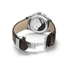 Часы «Certina DS-1 Powermatic 80» оснащены тёмно-коричневым ремешком из натуральной кожи с боковой прострочкой или 5-рядным браслетом из нержавеющей стали, который у двух моделей декорирован чётными рядами с PVD-покрытием из розового золота. Ремешок и браслет комплектуются раскладывающейся застёжкой-бабочкой с двумя кнопками, которая гарантирует удобное и безопасное ношение часов на запястье.