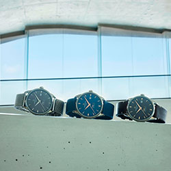 Коричневая модель с акцентами цвета желтого золота дополнена браслетом из нержавеющей стали миланского плетения и темно-коричневым кожаным ремешком. Светло-серая модель DS-1 Powermatic 80 выполнена в лаконичном современном дизайне. Серебристые стрелки и часовые отметки гармонируют с браслетом миланского плетения и серым текстильным ремешком из материала #tide ocean material®. Версия в синем цвете – самая ультрамодная: элементы с напылением из розового золота комбинируются со стальным браслетом из пяти рядов звеньев и синим текстильным ремешком из материала #tide ocean material®. Все три модели оснащены системой быстрой замены ремешка, выпуклым сапфировым стеклом, прозрачной задней крышкой корпуса и, естественно, системой двойной надежности Double Security (DS).