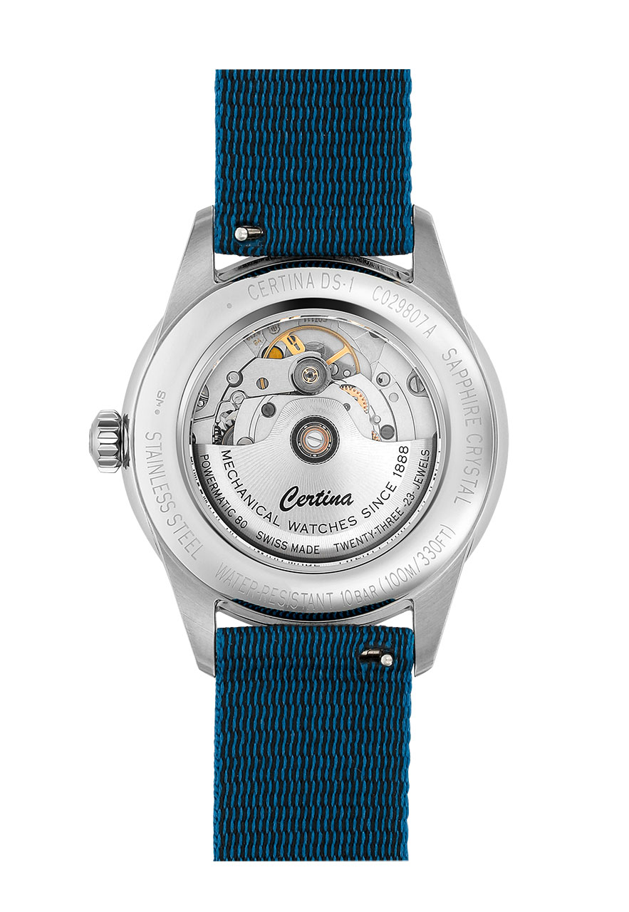 Новая модель DS-1 Powermatic 80 – образец безупречной швейцарской точности и инновационности. В сотрудничестве с учеными из OST – Университета прикладных наук восточной Швейцарии – компания #tide ocean material® разработала революционный метод переработки пластиковых отходов, выловленных в океане, основанный на принципах механического апсайклинга. Марка Certina разделяет озабоченность состоянием экологии и нацелена на повышение экологической безопасности. Результатом совместной работы стало новое поколение высококачественных, прочных и красивых текстильных ремешков.