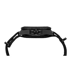 Часы DS Action Diver – фаворит международного клуба поклонников Certina. Новая версия этих современных дайверских часов отличается универсальностью: полностью выполненные в черном цвете, они излучают чарующее сияние. В немалой степени этому способствует толстый слой покрытия Super-LumiNova® на стрелках и часовых делениях, а также на метках на однонаправленно вращающемся безеле. Черное матовое керамическое кольцо безеля идеально подходит для нанесения шкалы времени погружения, цифры на которой покрыты лаком. Корпус из нержавеющей стали диаметром 43 мм имеет PVD-покрытие черного цвета, что идеально гармонирует с остальными деталями часов. Дополнительную ассоциацию с морской стихией вызывает черный тканевый ремешок в стиле ремешков NATO, изготовленный из материала #tide ocean material®. Ремешок из экологичного материала на основе выловленного в океане пластика имеет классическую застежку с черным PVD-покрытием.