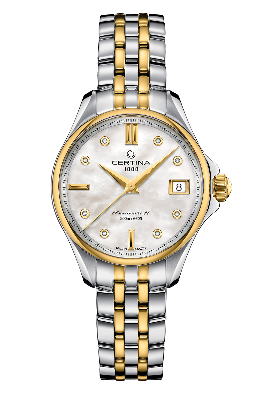 Новая модель швейцарской часовой марки Certina предназначена для тех, кто не признает компромиссов и живет настоящим моментом. С видеоконференции на тренировку, а потом на пляж – почему бы и нет? Часовой механизм Powermatic новой модели DS Action Lady сочетает надежный 80-часовой запас хода и пружину баланса NivachronTM, обладающую антимагнитными свойствами. Сверкающие бриллианты подчеркивают утонченный стиль, а прочная конструкция и водонепроницаемость 20 бар (200 м) делают часы незаменимым помощником в любых приключениях.
