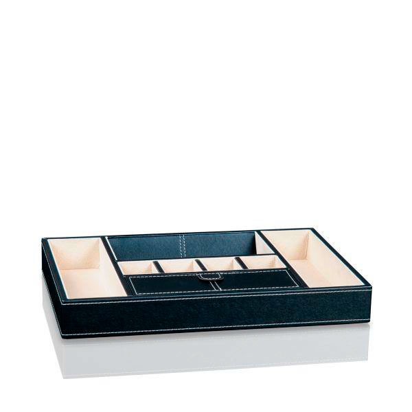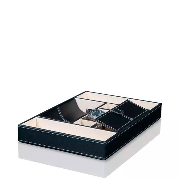Designhütte Chino — элегантная шкатулка для хранения украшений и часов, сочетающая стиль, функциональность и немецкое качество исполнения. Эта модель представляет собой не просто аксессуар, а полноценный интерьерный акцент, подчеркивающий ценность и статус ваших ювелирных изделий и часов. Корпус изделия выполнен из высококачественного синтетического материала с текстурированной поверхностью, устойчивой к пыли, царапинам и износу.