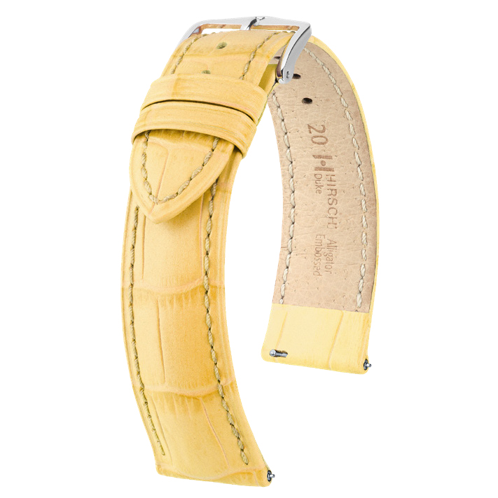Изготовленный из итальянской телячьей кожи с имитацией кожи аллигатора, ремешок обладает полуматовой поверхностью с характерным двухтональным эффектом. Каждая деталь продумана до мелочей: от утончённой строчки тон в тон до изящной пряжки в традиционном дизайне HIRSCH. Обновлённая палитра включает жизнерадостные цвета: ярко-жёлтый, оранжевый, насыщенно-розовый и небесно-голубой — для тех, кто не боится заявить о себе.