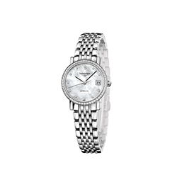 Модель L4.309.0.87.6, представляющая коллекцию «The Longines Elegant» с её главными признаками – классическим дизайном и элегантностью. Материал изготовления корпуса – нержавеющая сталь, диаметр корпуса – 25,5 мм. Безель украшают 52 бриллианта, на белом перламутровом циферблате в качестве условных индексов находятся 12 бриллиантов. Модель оснащена автоматическим механизмом калибра «L595».