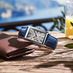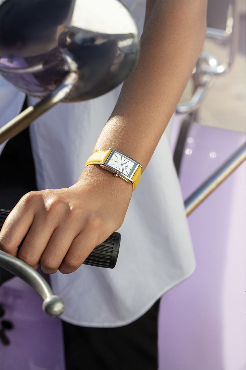 В коллекции появились новые циферблаты прямоугольной формы, вдохновленные часами 20-х годов ХХ века. Простые и лаконичные, два новых белых циферблата украшены удлиненными часовыми метками или сочетанием меток и арабских цифр в положении 3, 6, 9, 12 часов. Версия с авантюриновым циферблатом, напоминающим ночное звездное небо, дополнена кожаным ремешком в тон или стальным браслетом.