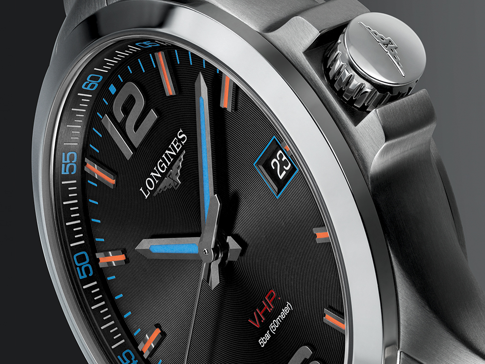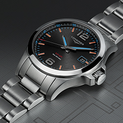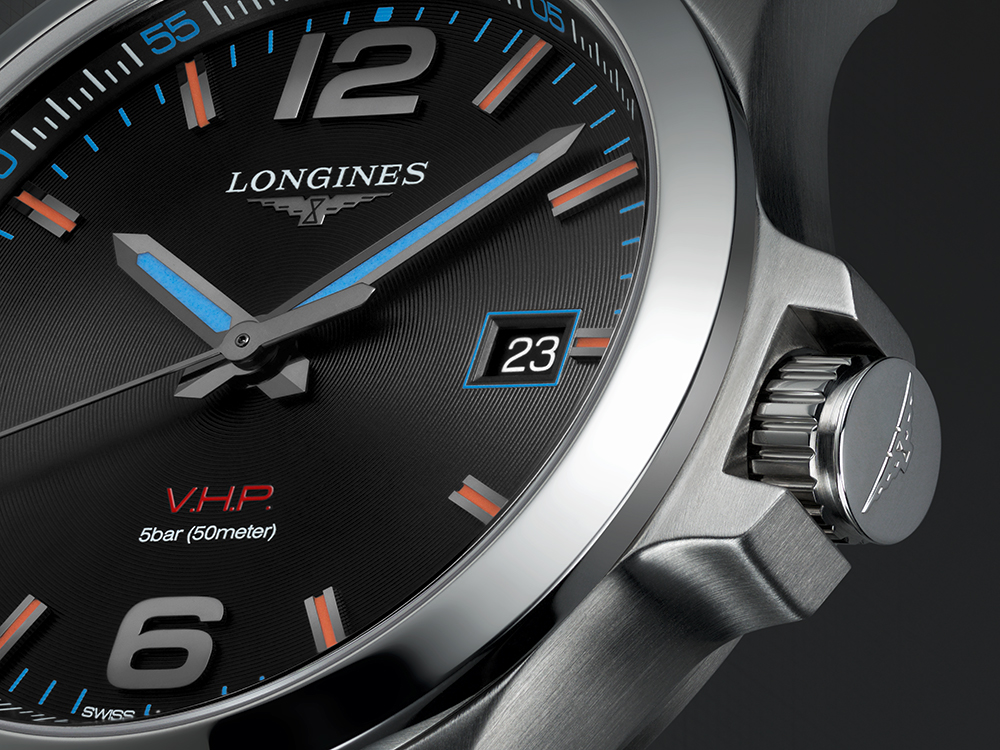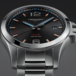 Часы Conquest V.H.P.* — новое достижение в области кварцевых часов — сочетают в себе высокую точность совершенного механизма, спортивный внешний вид и элегантность, характерные для марки Longines. При создании модели Conquest V.H.P. производитель часов применил технологии, в которых является признанным экспертом. Разработки в области хронометража прославили бренд еще в 80-е годы прошлого столетия.