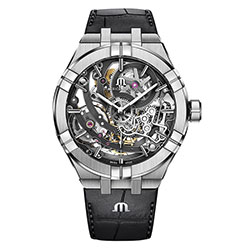 В истории марки Maurice Lacroix скелетоны занимают особое значение. Первая модель такого типа Calypso Squelette появилась в 1993 году. Ряд коллекций скелетонированных часов помогли сформировать узнаваемую концепцию бренда. Принцип скелетонирования заключается в том, что крупные детали механизма максимально избавляются от «лишнего» металла, сохраняются только несущие и функциональные элементы. Для этого требуется ювелирная работа мастеров, которая сравнима с трудом художника: каждый рисунок скелетона, чередование полых и цельных элементов должны соответствовать общему творческому замыслу и определенному стилю.