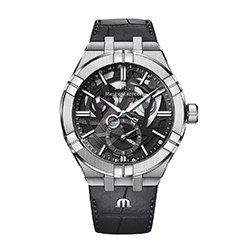 Выпуск коллекции AIKON в 2016 году стал для Maurice Lacroix возвращением к культовым дизайнерским кодам 90-х годов прошлого века, переработанным в эстетике нового тысячелетия. Узнаваемый облик AIKON складывался из геометрически выразительного силуэта корпуса, продуманного контраста матовых и полированных поверхностей. А элегантность этих часов тонко подчеркивали текстурные циферблаты с отделкой гильоше. Новый же AIKON Mercury отсылает, скорее, к эстетике коллекции Masterpiece, демонстрируя сложный скелетонизированный циферблат – характерную особенность часов Maurice Lacroix с 90-х годов. Сегодня часовые мастера мануфактуры представляют обновленный скелетон в современной эстетике, где сложный рисунок мостов подчеркнут отделкой круговым сатинированием и пескоструйной обработкой.
