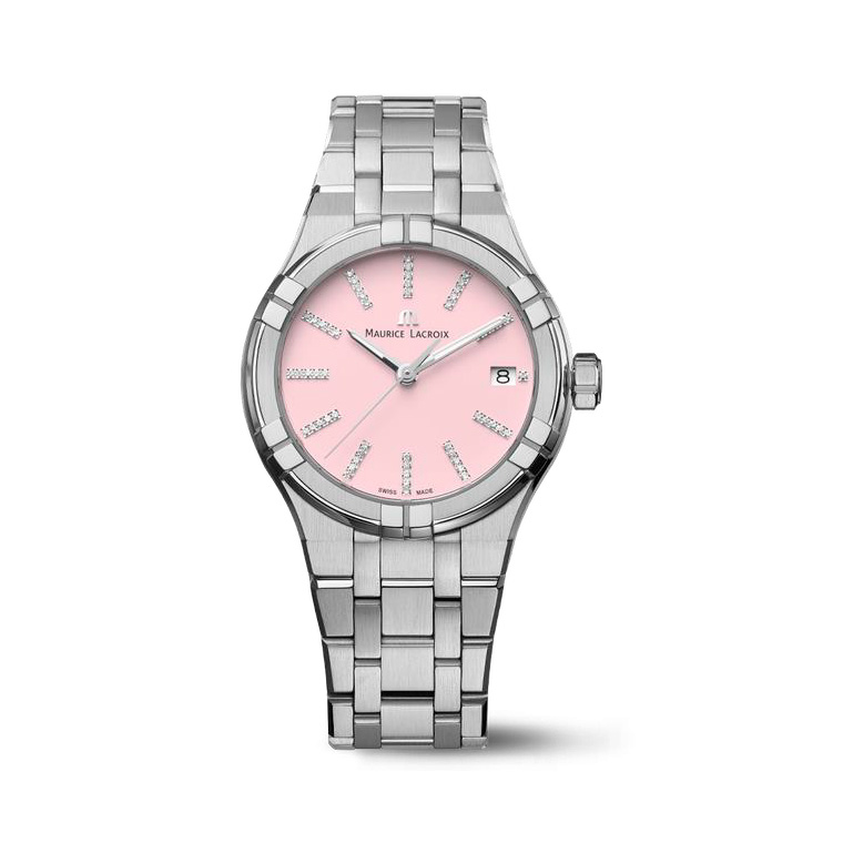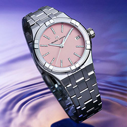 - Циферблат: Sunset Pink или Deep Sky Blue, бриллиантовые индексы