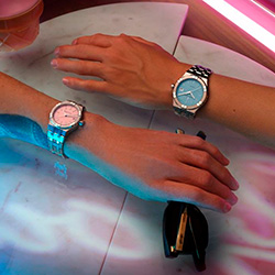 Коллекция представлена тремя моделями. Первая — это 35 мм версия AIKON Quartz в цветах Sunset Pink и Deep Sky Blue, которая словно создана для моментов, полных радости и романтики. Индексы, украшенные бриллиантами, мерцают, напоминая о том, как ночное небо переливается под звездами. Вторая модель, диаметром 40 мм, также выполнена в оттенке Deep Sky Blue и идеально подходит как для ярких солнечных дней, так и для вечеров в свете ночных огней.