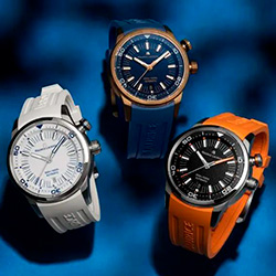 Специальная заводная головка, расположенная на отметке «2 часа», позволяет пользователю регулировать внутренний вращающийся безель. Он имеет отсчетную шкалу и является удобным способом измерения времени, проведенного под водой. Часы также оснащены центральной секундной стрелкой и индикацией даты в положении «6 часов». Вторая заводная головка, расположенная в положении «3 часа», регулирует различные показания, а также может использоваться для ручного механизма подзавода.