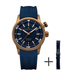 Часы PONTOS S Diver оснащены автоматическим калибром ML115, благодаря чему нет необходимости ручного подзавода. Бронзовая версия поставляется с двумя ремешками, один из которых выполнен из винтажной темно-синей кожи с логотипом компании M, а второй – из темно-синей резины с тиснением Maurice Lacroix.
