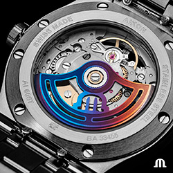 Впервые часовой бренд залил пластину механизма и мосты специальной радужной обработкой, придавая модели характерный внешний вид. Благодаря ажурному дизайну, пользователь может видеть множество движущихся компонентов, которые обычно скрыты от глаз. Механизм играет с прозрачностью, позволяя свету проходить через различные отверстия, тем самым освещая множество деталей. Колеблющийся вес настраивается индивидуально, включая пескоструйную обработку и нанесение на солнце. Кроме того, механизм украшен колимасоном.