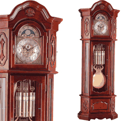 Механизм- Полированный механизм с 8-дневным заводом, бой 4/4, мелодия Westminster, 4 колокольчика, 11 камней, индикация дня, месяца, астрологического и лунного календаря, автоматическое ночное отключение мелодии и боя.