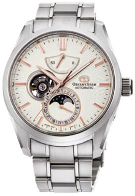 В линейке Orient Star Contemporary это первые функциональные и стильные модели с индикатором фаз Луны. В сердце часов – японский механизм собственного производства F7M63, за которым можно наблюдать через открытый баланс на циферблате в положении 9 часов. Главная особенность – индикатор фаз Луны – расположена у 6-часовой отметки на циферблате. Среди всех улучшений новинки можно выделить запас хода нового механизма: он составляет 50 часов, а индикатор запаса хода находится в положении 12 часов на циферблате.