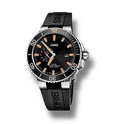 Изменения принесли часам не только более динамичный вид. Дизайнеры Oris предусмотрели небольшой промежуток между ободком и корпусом, благодаря чему ободок стало более удобно удерживать и поворачивать. Этот дизайн – отражение высокофункционального характера часов. Модель Aquis Small Second, Date оснащена вращающимся в одном направлении ободком с вставленным в него нецарапающимся и невыцветающим керамическим кольцом. Водостойкость часов до 500 метров (50 атм.).