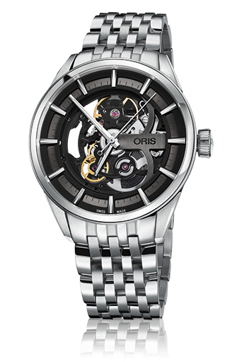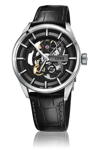Ярко выраженный аристократизм часов «Oris Artix Skeleton» обусловлен оригинальным сочетанием фирменной техники скелетонирования, нержавеющей стали, а также оттенков чёрного и тёмно-серого цвета. Оригинальная трактовка вновь ставшей модной темы скелетонированных часов сопровождалась изменением ещё одного важного параметра, свойственного моделям коллекции «Artix». Дело в том, что часы указанной коллекции имеют диаметр 42 мм, а хронограф этой коллекции – 44 мм. Тем не менее, разработчики дизайна новых часов решили, что скелетонированная модель с чернёными и серыми деталями открытого механизма будет лучше выглядеть в корпусе диаметром 39 мм.