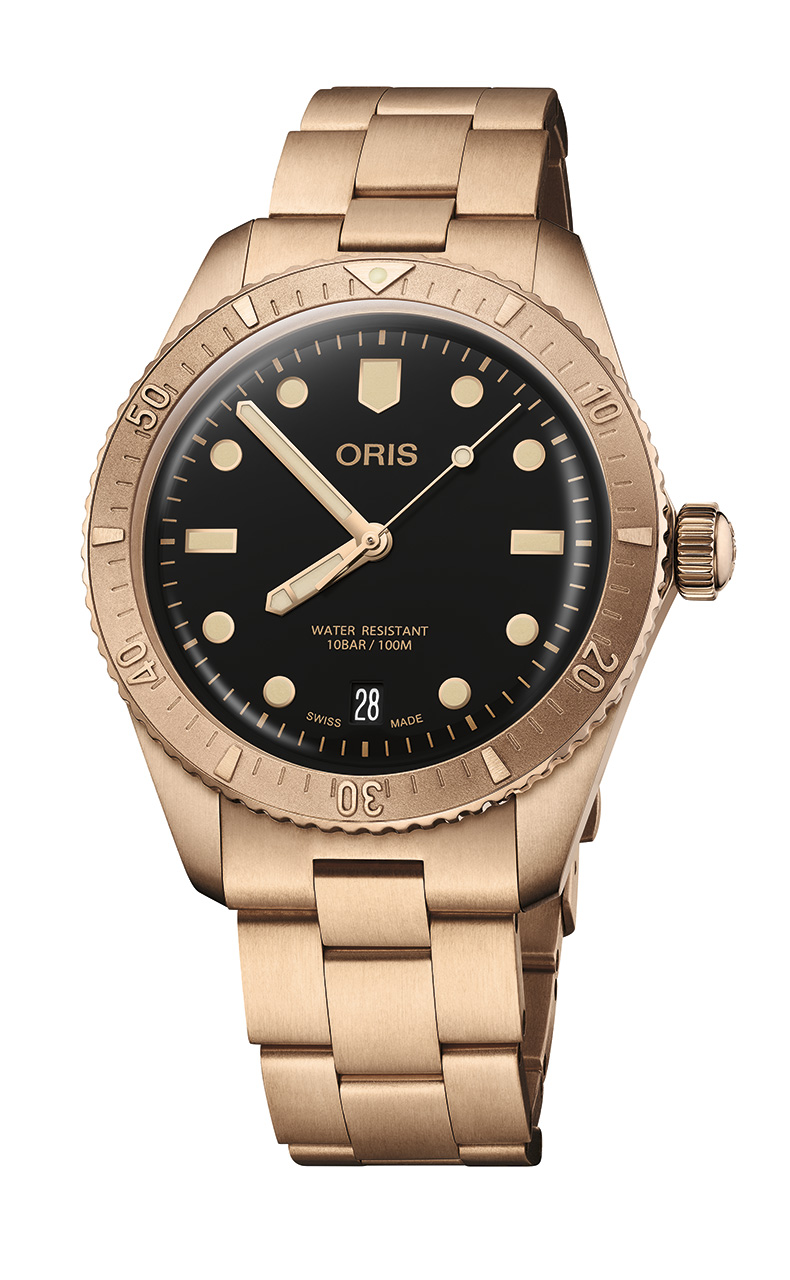 Погружение в ностальгию с винтажной палитрой - Oris возвращает одну из своих самых любимых моделей, Divers Sixty-Five Date, но с новым, смелым акцентом – в табачном оттенке. Вдохновленный предыдущими версиями, сочетавшими бронзовый корпус с яркими цветами, этот выпуск предлагает более зрелую, сдержанную цветовую гамму. Черный циферблат, резиновый ремешок или классический бронзовый браслет вместе с золотистыми часовой и минутной стрелками, с ярким люминесцентным покрытием создают элегантный и вечный стиль роскоши часовой классики. Это часы для тех, кто ценит все лучшее в новой версии любимых моделей Oris.