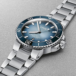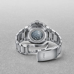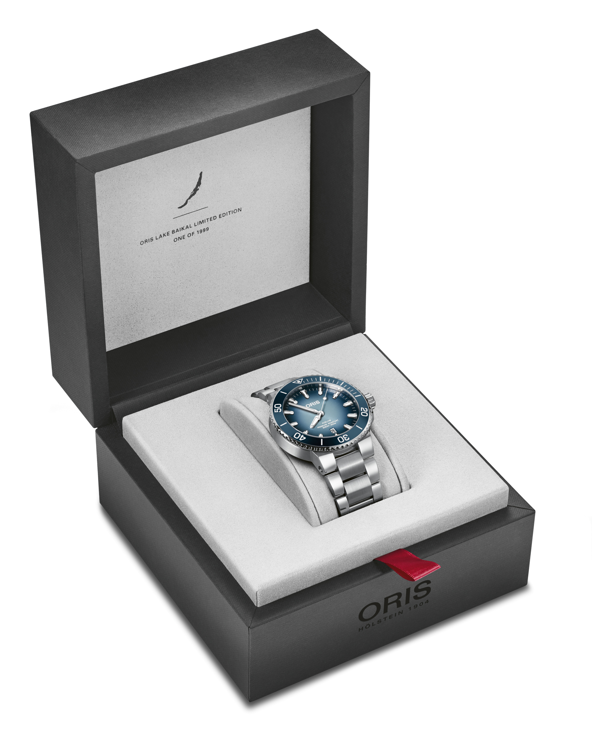 Новая лимитированная серия Oris выполнена на основе дизайна дайверской коллекции Aquis. В честь 1999 года, когда в России принят Закон об охране озера Байкал, всего произведено только 1999 экземпляров.