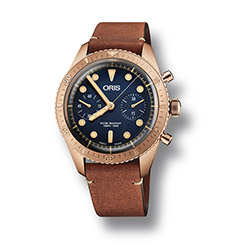 Часовая компания Oris представляет вторую лимитированную серию бронзовых часов – хронограф с двумя счетчиками из бронзового корпуса. Часы выпущены в память о героическом американском военном подводнике Карле Брашире. В истории ВМС США он останется первым афроамериканцем, поступившим на дайверскую службу и первым военным дайвером с ампутированной ногой.