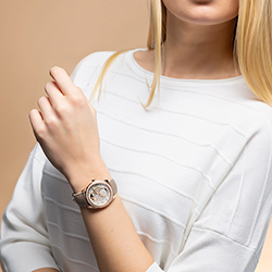 Компания Parmigiani Fleurier уверена, что каждая женщина неповторима. Поэтому производитель представляет новую изысканную коллекцию Tonda, часы которой удовлетворят даже самый взыскательный вкус. Часовые мастера мануфактуры стремились достичь идеального баланса между самыми передовыми технологиями и высоким ювелирным искусством, предлагая изумительные модели, украшенные бриллиантами, авантюрином, золотым кружевом и перламутром. В новой коллекции представлены часы с корпусами диаметром 33 или 36 мм. Это позволит каждой женщине подобрать для себя украшение из розового золота.