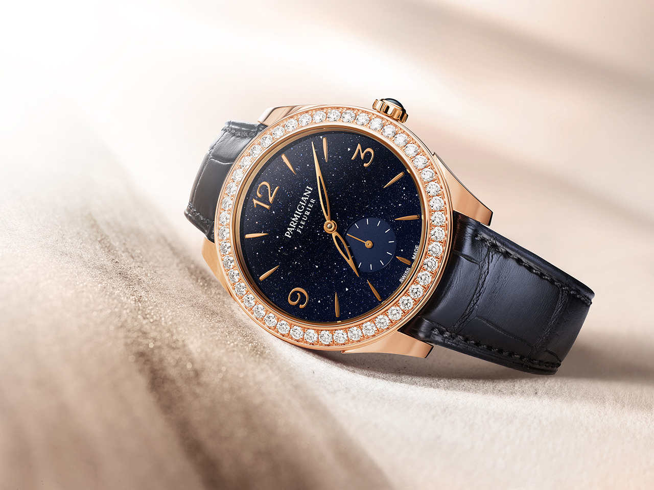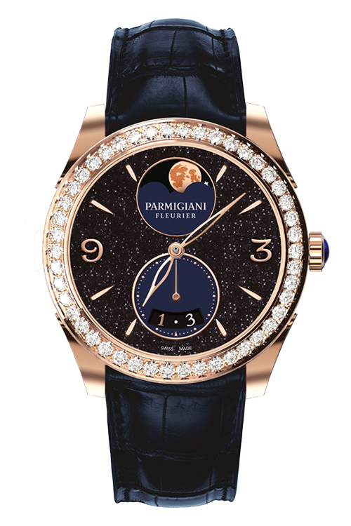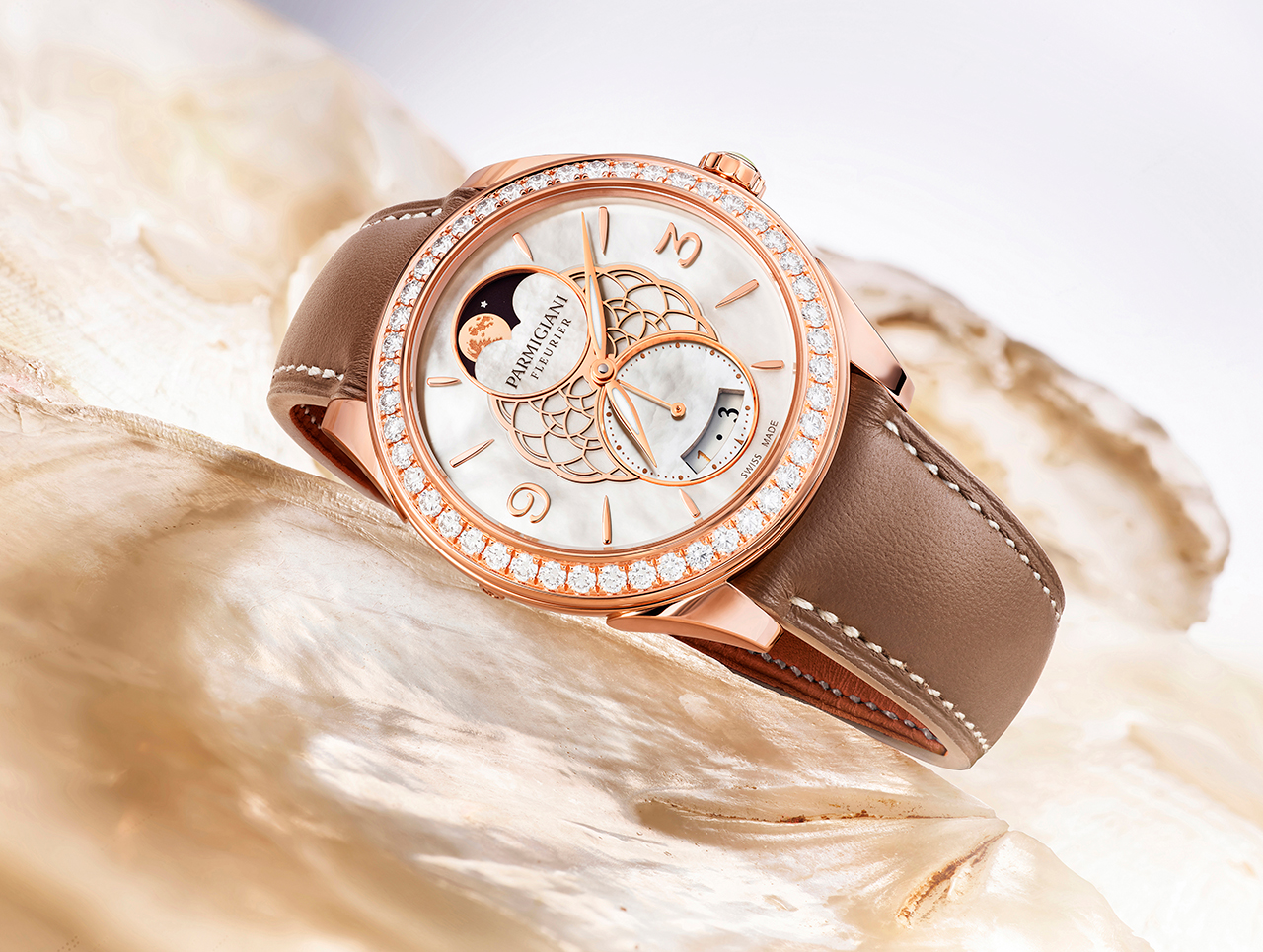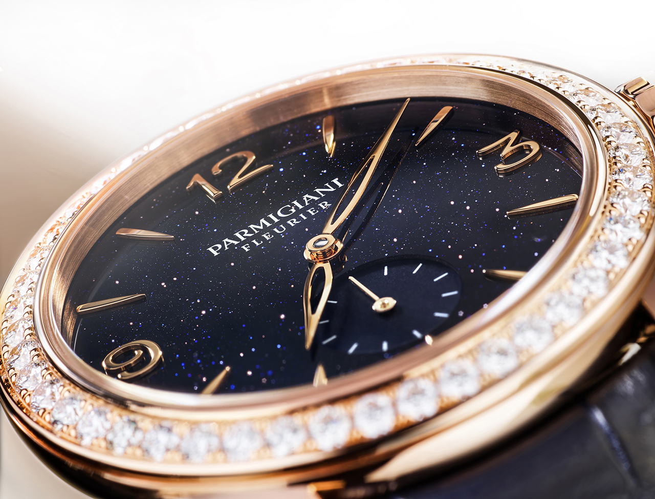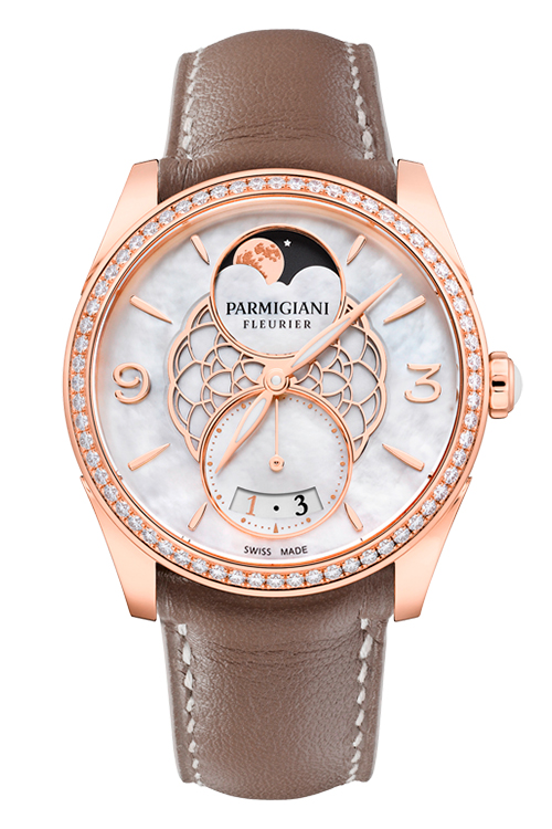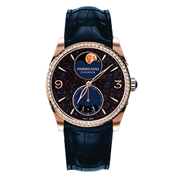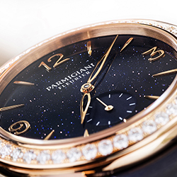 Начиная с выбора самых изысканных материалов и заканчивая тщательным изготовлением всех часовых деталей — каждому этапу разработки коллекции уделено самое пристальное внимание. Подчеркнутая бриллиантами различных размеров игра света, звездный блеск авантюрина или изящно закрепленное золотое кружево на перламутре — все продумано так, чтобы в любой момент времени каждый из этих уникальных часовых спектаклей удивлял своей красотой. Причем эту тонкую поэзию на всех представленных циферблатах может органично дополнить указатель фазы Луны. Как всегда компания Parmigiani Fleurier демонстрирует не только высочайший уровень часового искусства, но и свое непревзойденное мастерство работы с самыми утонченными природными материалами.