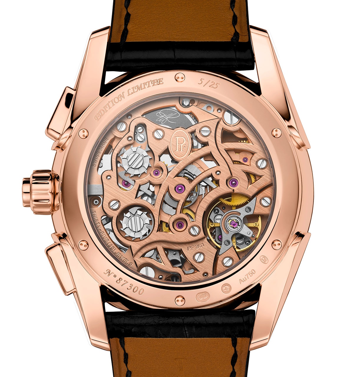 Сердце этого мужского украшения, настоящего произведения Высокого часового искусства – 5-герцовый калибр PF361, платина и мосты которого изготовлены из золота. Tonda Chronor Slate – интегрированный сплит-хронограф с двумя колонными колесами. Кроме того, эта функция активируется через вертикальное сцепление. Для лучшей читаемости счетчики слегка смещены в верхнюю половину циферблата.