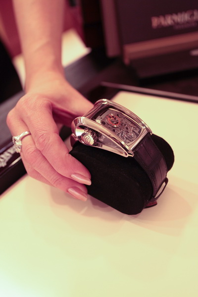 Многие гости салона “Студия времени” не удержались и примерили редкие часы. И почти все отметили удивительную особенность, что эти часы идеально сидят на запястье благодаря характерным “ушкам”. И даже если речь идет не о лимитированной коллекции Parmigiani, эти часы вы не увидите на каждом втором запястье. Parmigiani – это не просто роскошь это идеал для людей понимающих и утонченных.