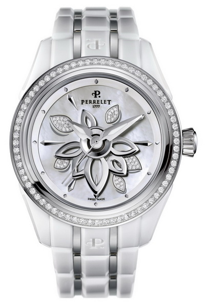 На этот раз фирма "Perrelet S.A." представила изящную модель, которая имеет два варианта исполнения: "бриллиантовый цветок" насыщенного чёрного цвета и его белоснежный аналог в корпусах, выполненных из специальной высокопрочной керамики, и украшенных бриллиантами. Изменение материала изготовления нисколько не умалило изысканный дизайн и безупречное качество женских хронометров, они по-прежнему благородны и надёжны.