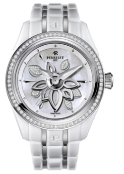 Бриллиантовый цветок, над которым возносятся стрелки, абсолютно синхронизирован с находящимся под циферблатом сектором подзавода, который обеспечивает постоянную «подпитку» калибра энергией. В дальнейшем, модель «Diamond Flower» несколько раз модифицировалась. Благодаря тому, что компания «Perrelet» не боялась экспериментов с новыми материалами, были созданы версии в керамическом корпусе со стальным рантом, а также варианты в корпусах из стали и розового золота.
