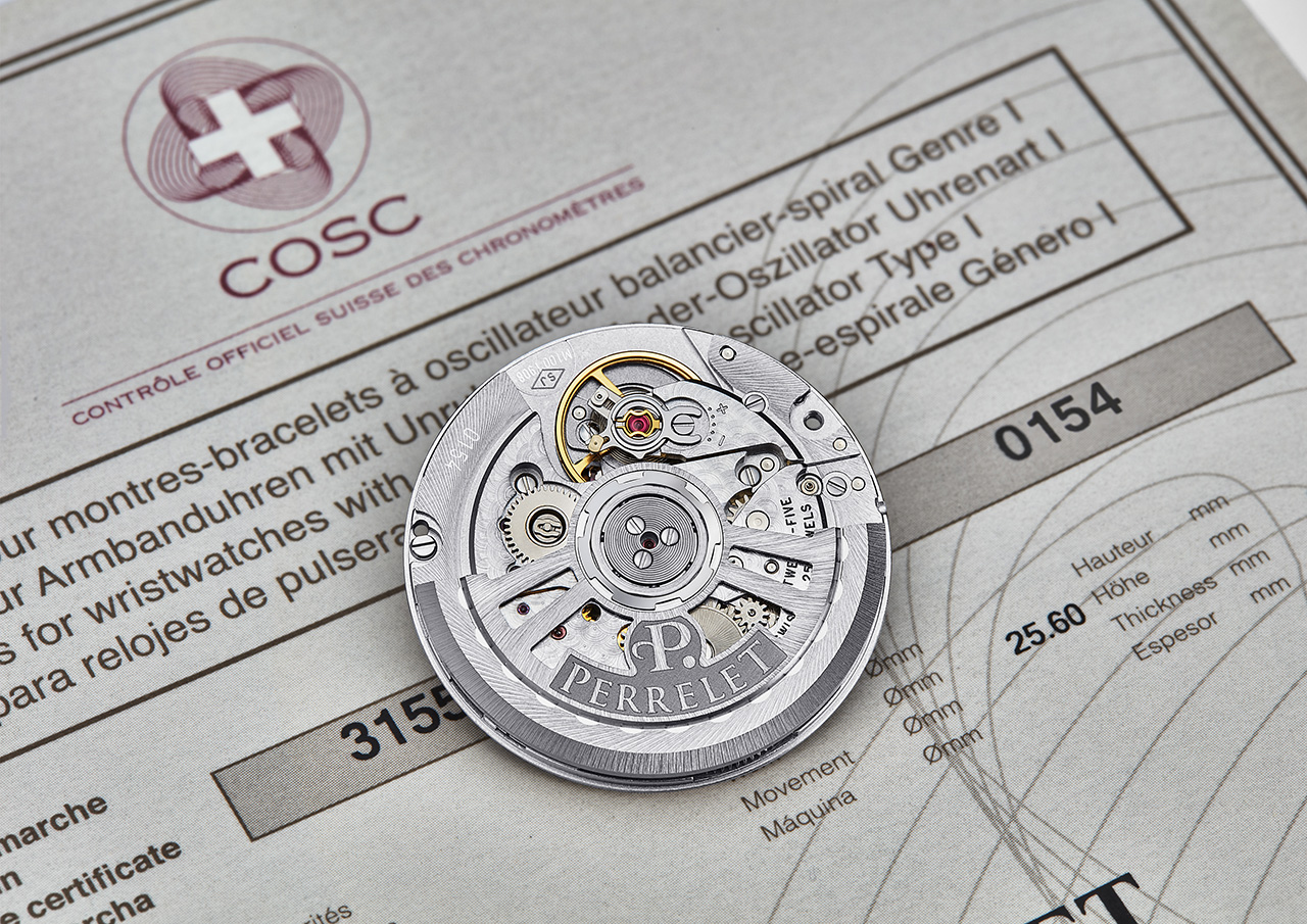 - Часовой механизм: Автоматический калибр P-331-MH с собственным производством Perrelet