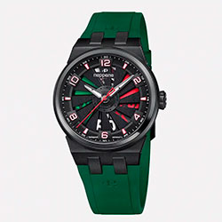 • Ремешок: Зеленый каучуковый с застежкой из титана класса 2 с черным DLC покрытием.
