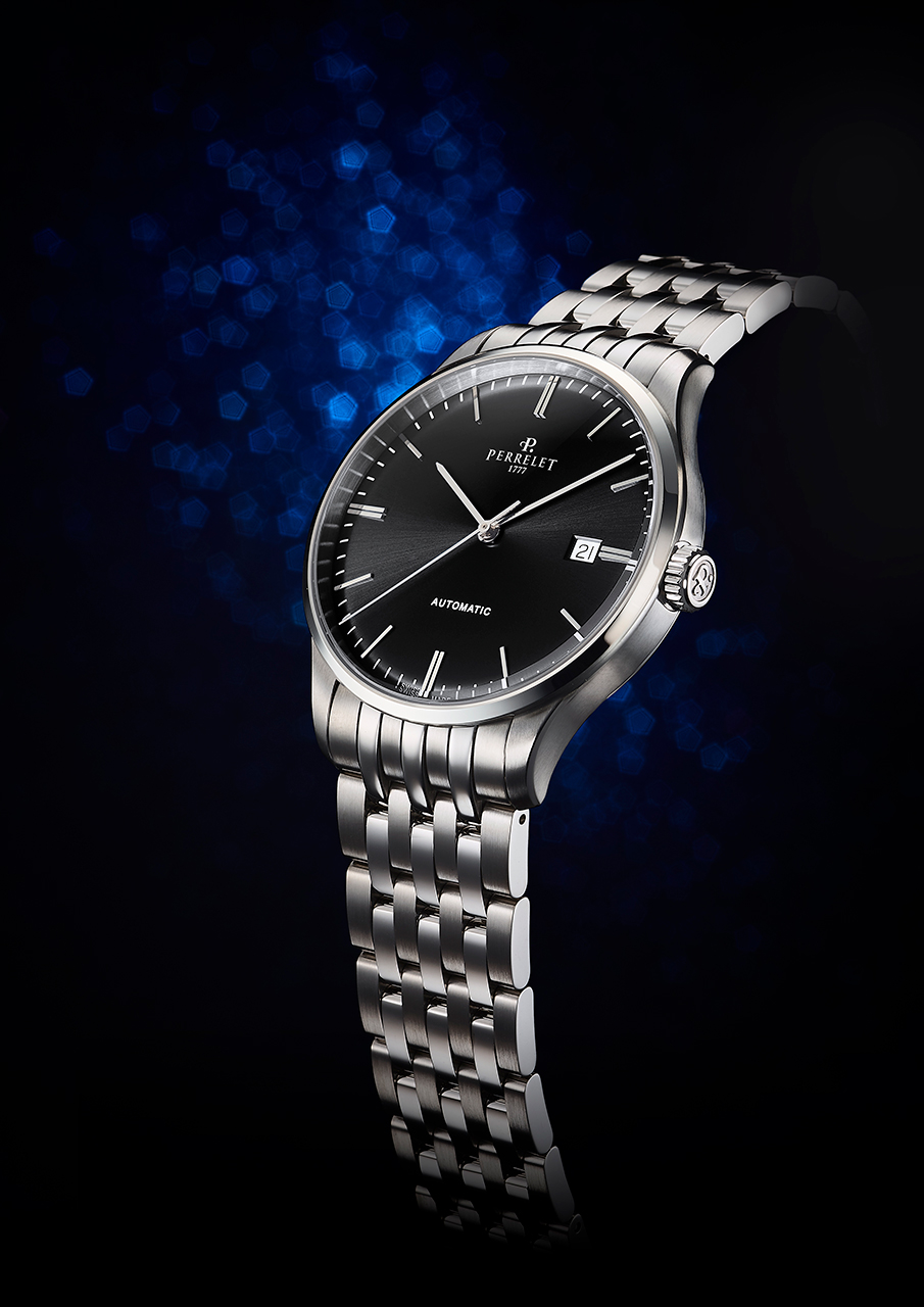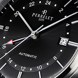 Модели Weekend 3-Hands, Open Heart и GMT дополнены черным ремешком из телячьей кожи с теснением под кожу аллигатора и классической застежкой с логотипом Perrelet. Также представлен вариант с эргономичным стальным браслетом из 7 звеньев с чередованием атласной и полированной отделки.