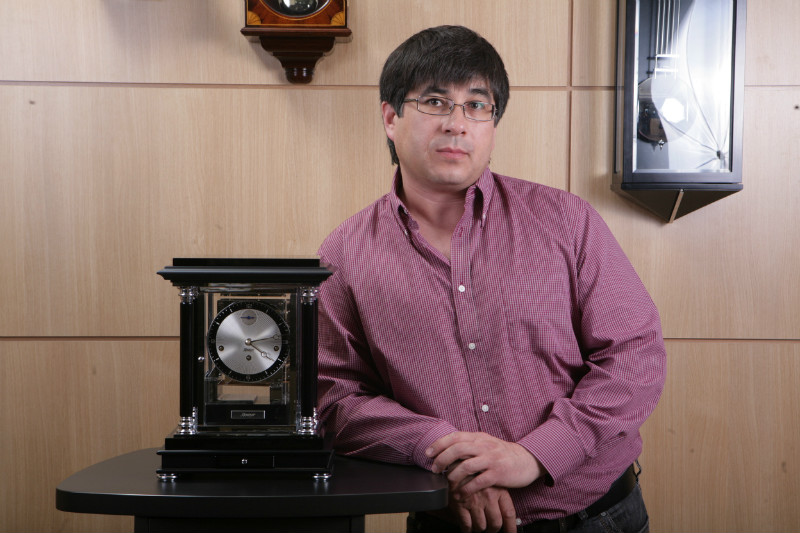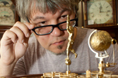 Это, пожалуй, одна из самых ярких коллекций немецкой компании. Миниатюрная модель солнечной системы с фигурой могущественного бога Солнца в центре и земным шаром в сопровождении своей спутницы - Луны - напротив. На специальном диске, окружающем планетную группу, отображается дата, месяц и знак Зодиака. Невольно вспоминается Кант, сказавший, что для него есть только две вещи, которые достойны внимания - звёздное небо над головой и "нравственный закон внутри нас". С внутренним миром ничего не поделать (работать над собой нужно!), а вот по-новому увидеть себя в мире удастся благодаря Hermle "Tellurium III". Александр Воронов промолчал, какие скрытые смыслы ему открылись. Не понятно, сколько бы еще он стоял вот такой, завороженный, строя из себя щепетильного часового мастера, если бы быстрый фотограф не сказал... "Снято!".