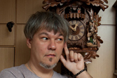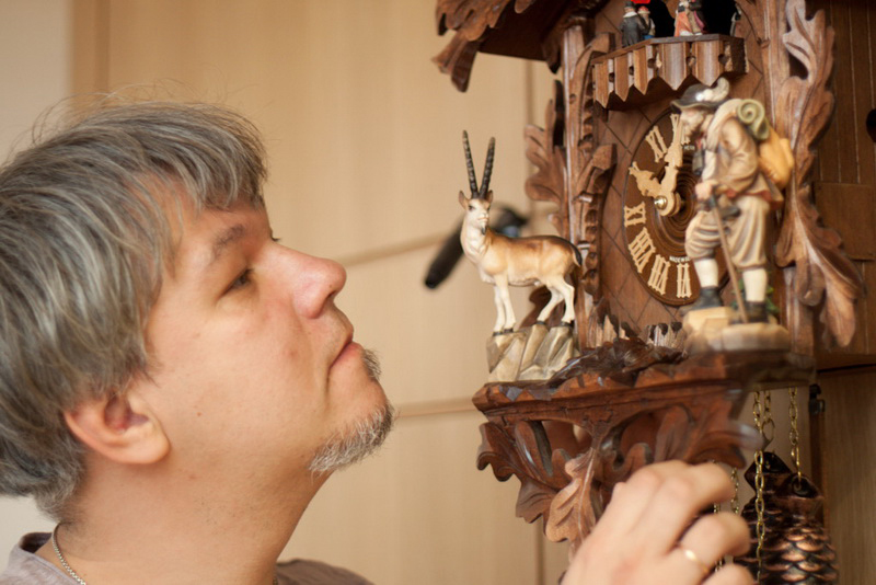 "Саша, а тут не только кукушка - тут и целый козел", - эта реплика Александра сильно позабавила. Он приподнялся к "козлу" на носочках, стоя на стуле (так было нужно по сюжету съемки). Кстати, уникальность фабрики в том, что каждый циферблат - это как будто отдельно взятый сказочный сюжет. Часы и сейчас, как и в XIX веке, производятся семьей Херр. Мастера компании в своей работе используют только хорошо резонирующие музыкальные породы дерева - поэтому акустика у Hubert Herr удивительная.