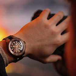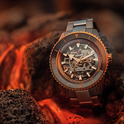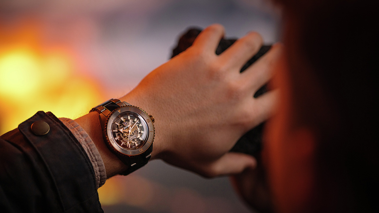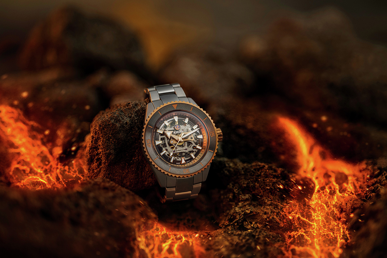 Rado подтверждает свою позицию непревзойденного мастера в области инновационных материалов с помощью этого нового корпуса, сублимированного в огненной среде, где температура плазмы примерно в четыре раза превышает температуру на поверхности Солнца. Внутри находится автоматический механизм Rado calibre R808 skeleton с новой продуманной геометрией и компонентами, окрашенными в разные тона. Это позволяет отчетливо рассмотреть различные детали, хорошо известные любителям сложной архитектуры или замысловатых механизмов. Особые штрихи включают новую платину с горизонтальной полировкой и мост минутного колеса розово-золотого цвета. Он отчетливо виден внутри более широкого окна циферблата, что оценят любители часов, наряду со множеством цветовых контрастов. Механизм, оснащенный антимагнитной и высоконадежной пружиной NivachronTM, полностью протестирован в пяти положениях вместо обычных трех и обеспечивает до 80 часов запаса хода.