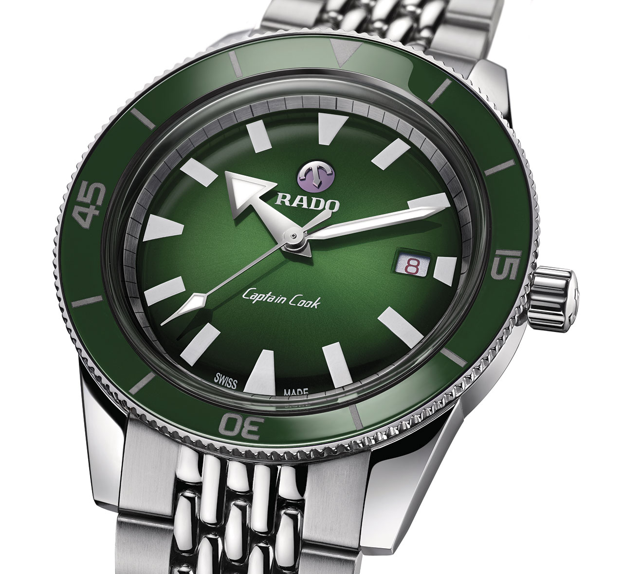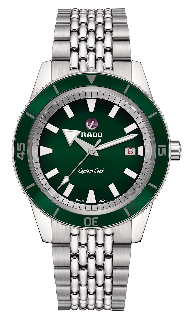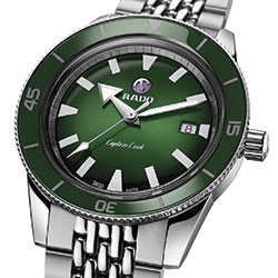 Классические цвета Rado — это еще одна отличительная черта новой коллекции. Зеленый, синий и коричневый оттенки, впервые использованные в коллекции часов True 2016 года, теперь дебютировали и в Captain Cook в соответствующих сочетаниях циферблатов и безелей.