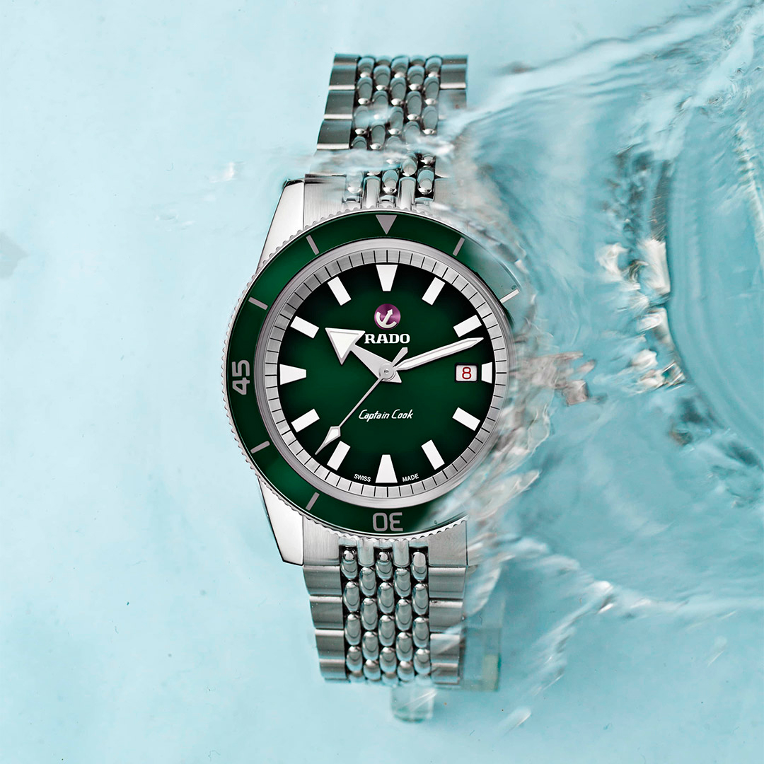 Насыщенный цвет прохладной синевы — выбор тех, кто ищет классику и стабильность. Роскошный и сочный зеленый цвет — воплощение энергии и свежести — идеальный выбор для весны. Сверкающий морозный белый цвет олицетворяет сияние и чистоту и является идеальным выбором для тех, кто любит новые начинания. Часам Captain Cook есть что рассказать о себе. Их история хранит множество рассказов, а их выносливый характер дает вам возможность понять значимость времени. Высокотехнологичные материалы и дизайн часов прошли испытание временем. Captain Cook от Rado станут верным помощником, благодаря которому вы всегда будете в нужном месте в нужное время – стоит только завести свои часы!