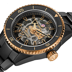 • сталь с покрытием Rose Gold/ полированная черная керамика,  вращающийся (Captain Cook Skeleton)