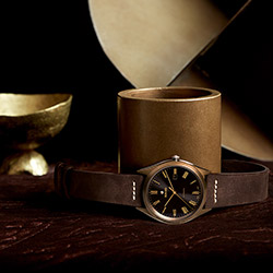 Часы коричневого цвета оснащены броским винтажным ремешком NATO, а модель в бронзовых тонах — коричневым ремешком из искусственно состаренной кожи. Это еще одна линия контрастов данной модели и прекрасный пример идеального гармоничного сочетания современных и традиционных материалов.