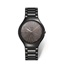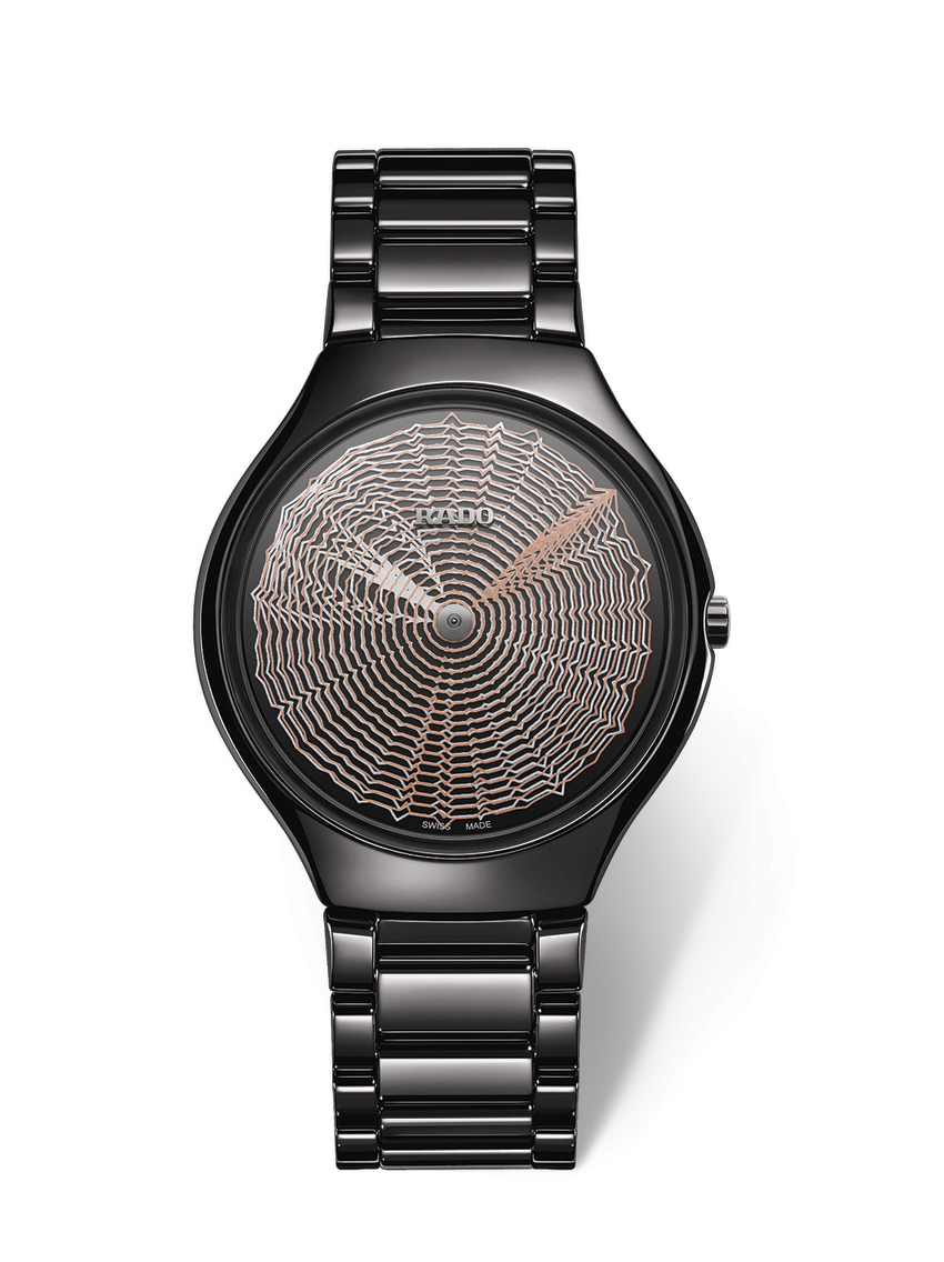Часы True Thinline Deep Web, выполненные из полированной черной высокотехнологичной керамики и оснащенные инновационными стрелками-дисками, выпущены лимитированной серией в 1001 экземпляр с особой гравировкой на задней части корпуса.